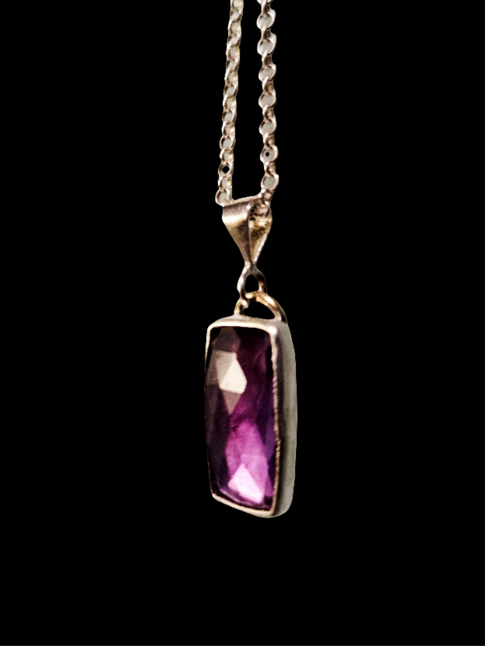 A stone of rare beauty and transformation, this color-changing alexandrite pendant reflects the shifting dance between light and shadow. Its rich tones shift from deep indigo and green in natural light to royal violet and pink under warm indoor lighting—an elegant reminder that nothing in life is static.