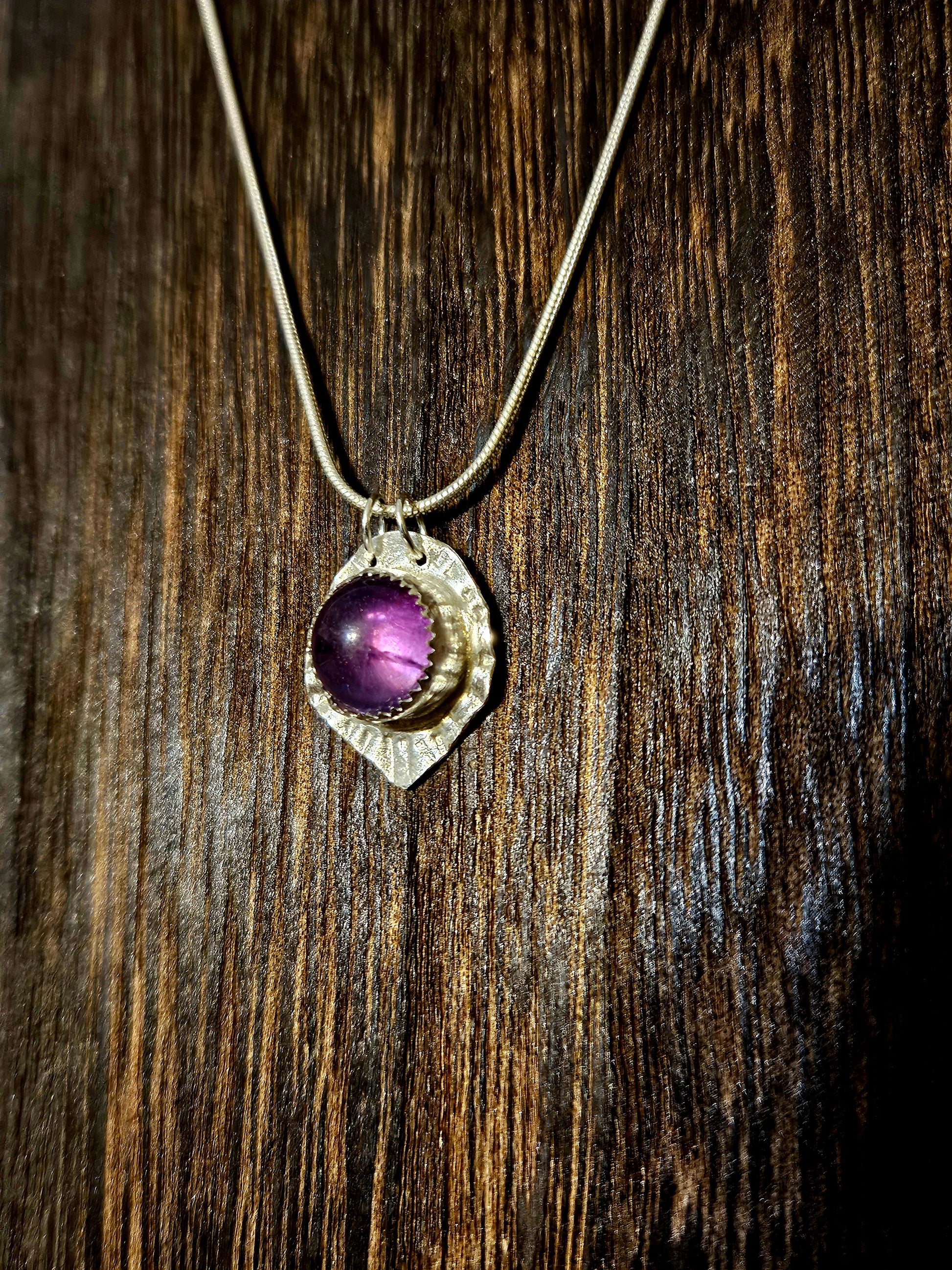 10mm Fluorite cabochon on 0.999 Fine Silver with 0.925 Sterling Silver chain and fittings