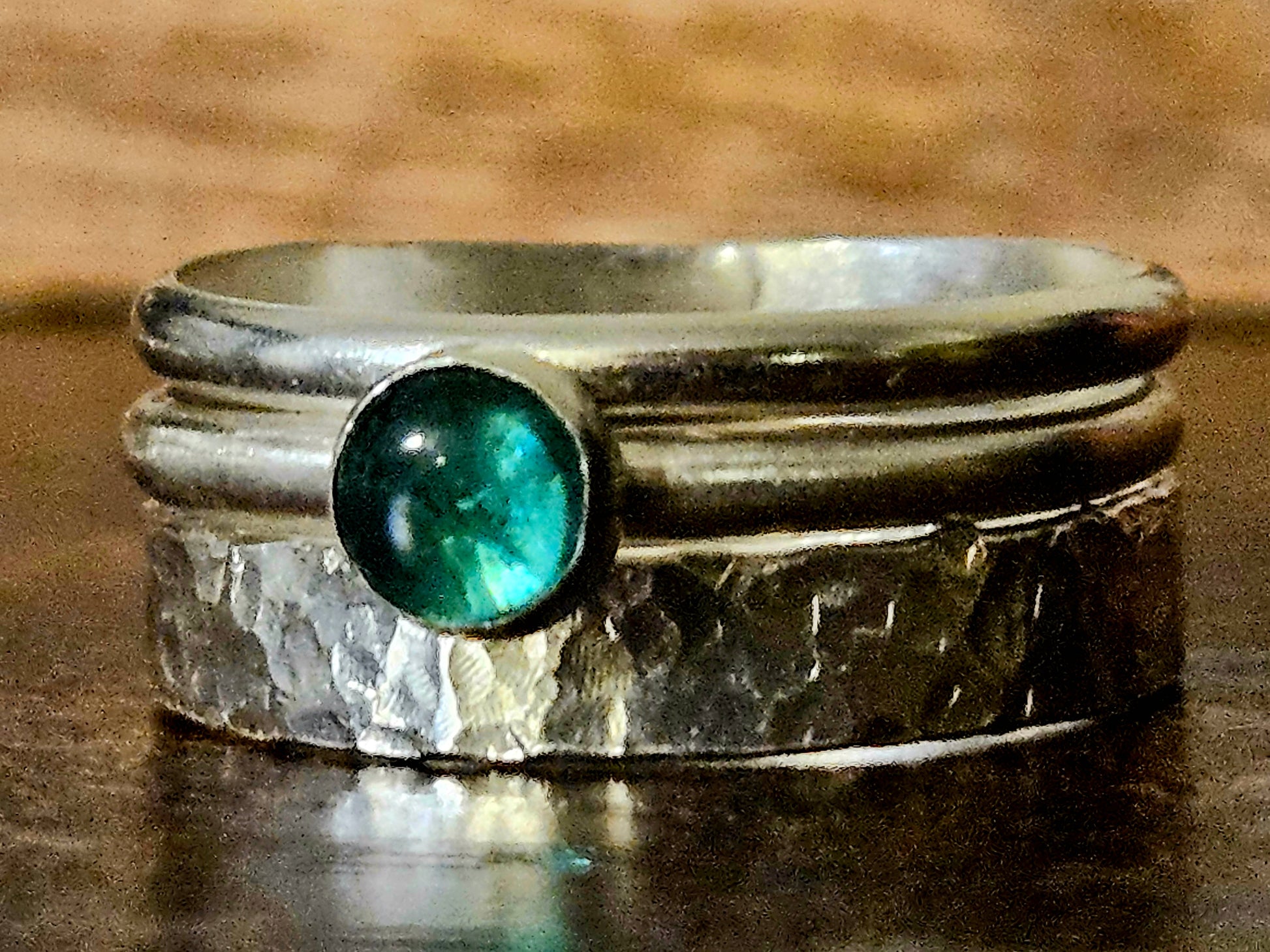 Hammer Sterling Silver Band Ring, Tourmaline Ring, and Minimalist Sterling Silver Band Ring.